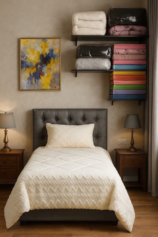 أحيانًا ملاءة سرير بنفس النسيج والألوان (حسب الموديل)